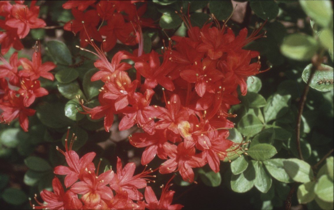 Other information: Closely related to R. cumberlandense and R. prunifolium; flowers slightly earlier and can have more flowers in a truss than R. cumberlandense. One of the oldest known species deciduous azaleas. Recorded at Kew in 1789 so it may be in the parentage of many of the hybrid deciduous azaleas available today